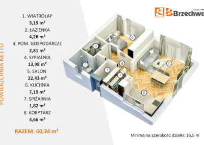 Powierzchnia użytkowa: 60 m2
